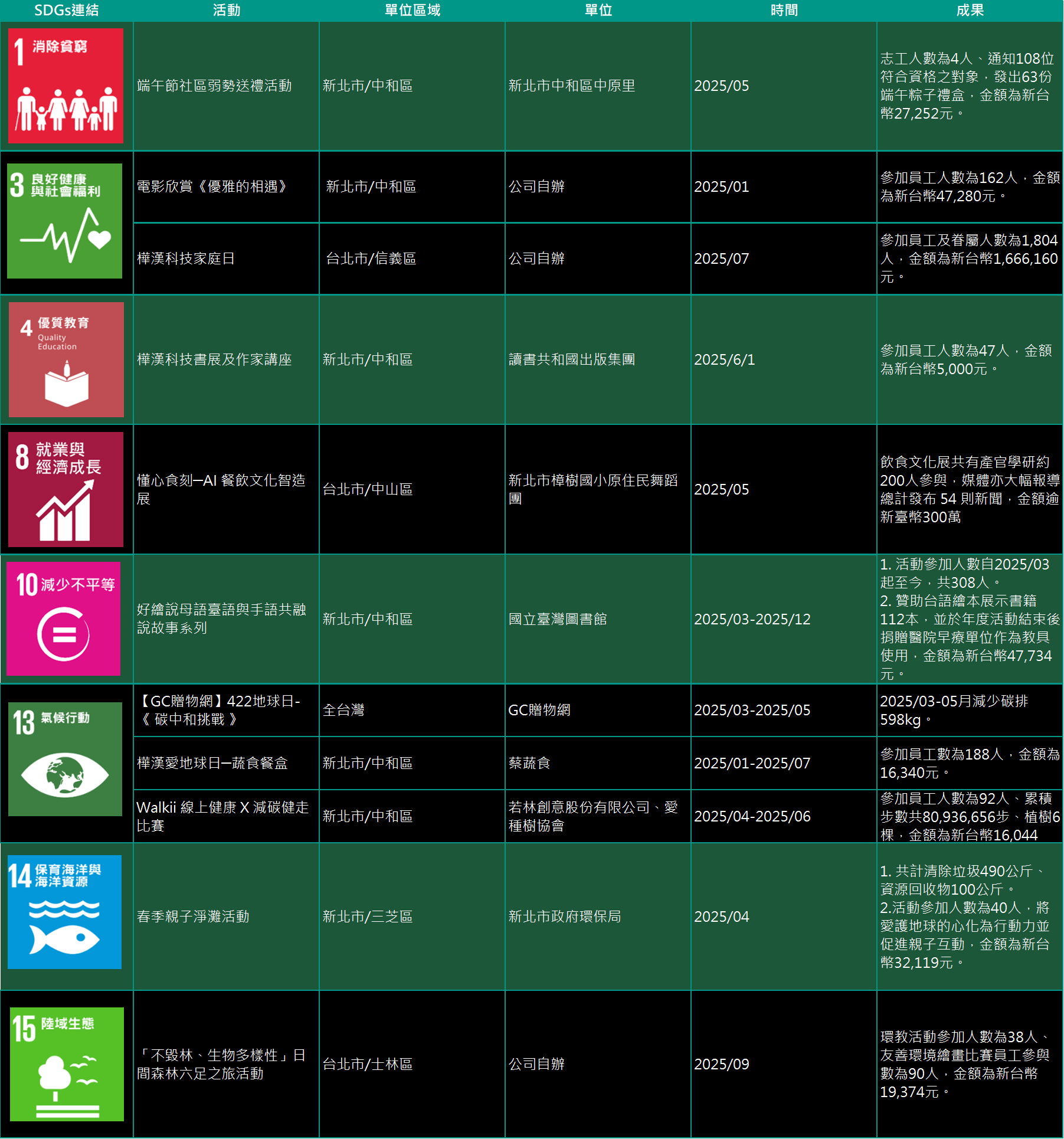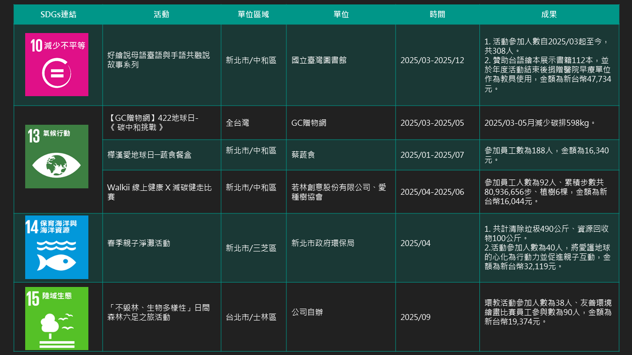 以下表格為2025年截至目前之執行成果。